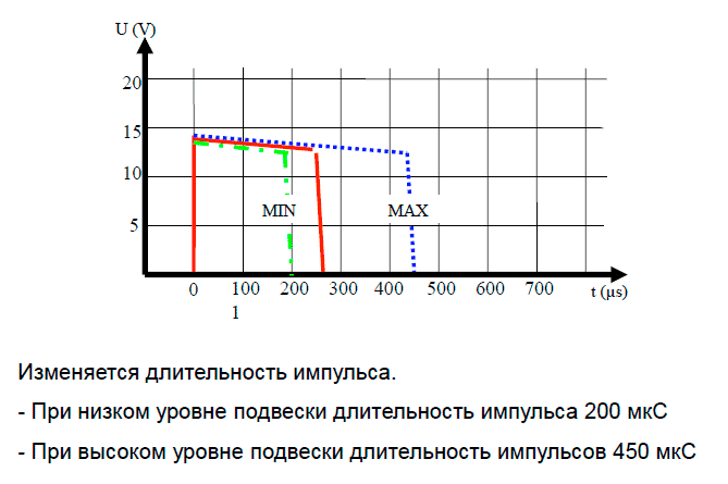 Сигнал на индуктивном датчике уровня подвески: