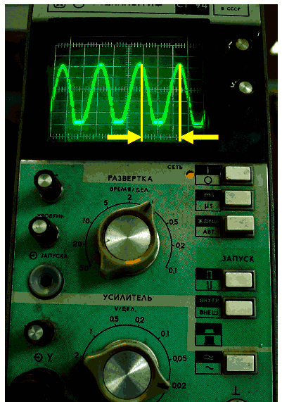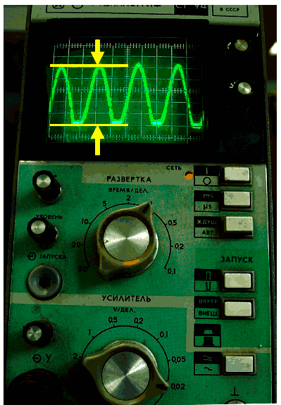 Вид картинки на экране, естественно, зависит от положения рукояток управления усилением и частотой развертки.