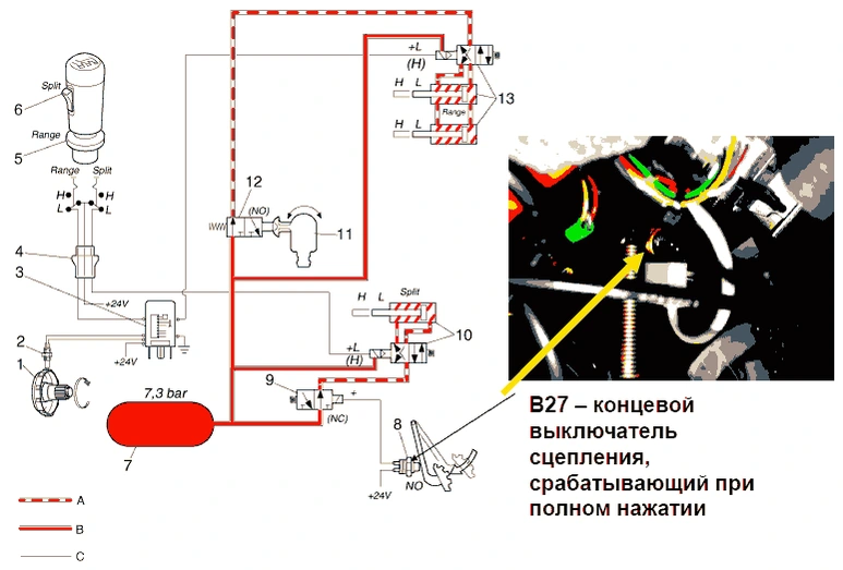 - 8 Провод от переключателя пониженного диапазона передач,