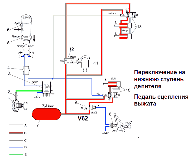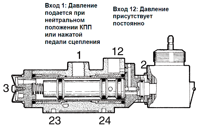 - 2 Провод к электромагнитному клапану, пониженный диапазон передач