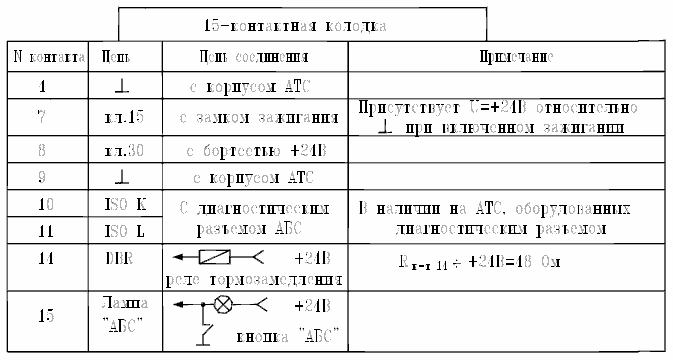 - вынуть предохранитель по цепи Кл.30 – к-т 8 (15-контактный разъем) ЭБК (для исключения АБС – регулирования);