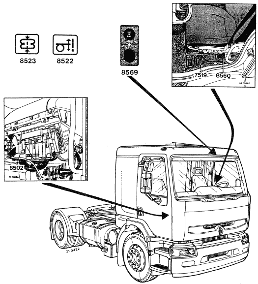 Размещение электрооборудования RENAULT PREMIUM
