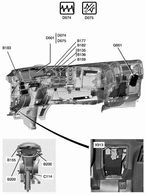 D075 Информационный указатель (перебоя в электронной системе автомобиля)