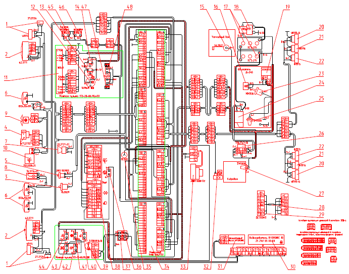 Расцветка проводов в жгутах: