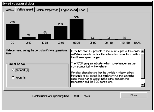 • Если автомобиль оснащен системой EDC, используйте программу "Scania Diagnos", для того чтобы получить доступ к данным о режимах работы двигателя, которых хранятся в блоке управления EDC.