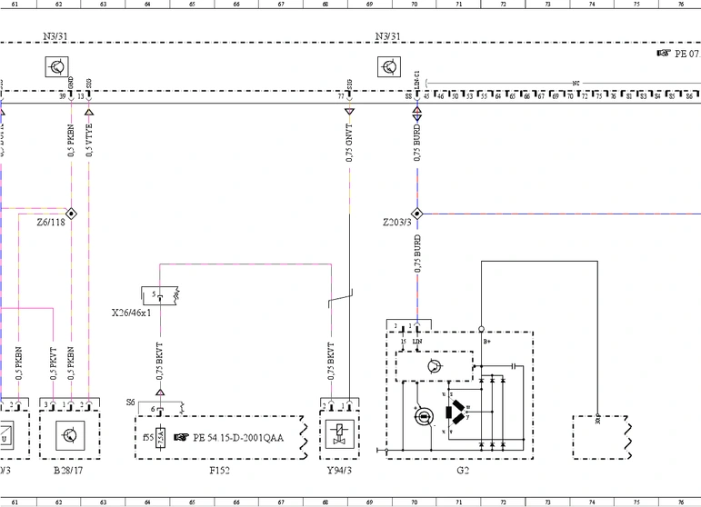 - F152f58 (предохранитель 58 (10/15 А) клеммы 87/3)