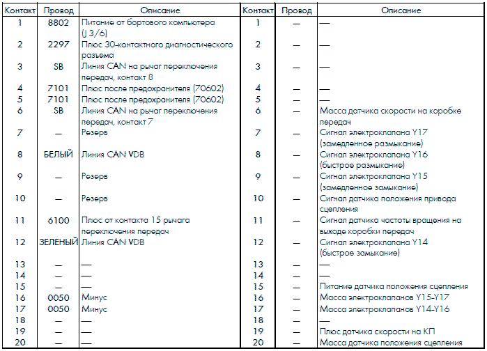 По линии связи от системы EDC ЭБУ коробки передач получает информацию о положении педали акселератора, расходе топлива, оборотах двигателя, включении моторного тормоза и принудительном включении пониженной передачи (режим kick-down).