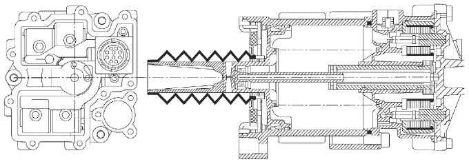 Пропорциональный электроклапан устанавливает относительное давление в системе и воздействует на управляющий клапан.