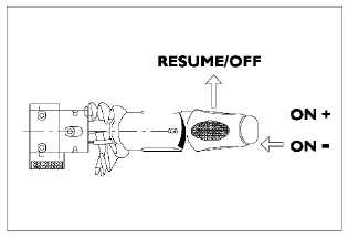 4. При нажатии переключателя еще раз в направлении руля (RESUME), функция активируется снова (Пиктограмма «СС» на дисплее горит в полную яркость).