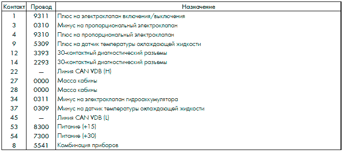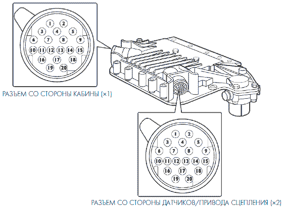 Исполнительный механизм соединяется с бортовой электропроводкой 20-контактным разъемом.