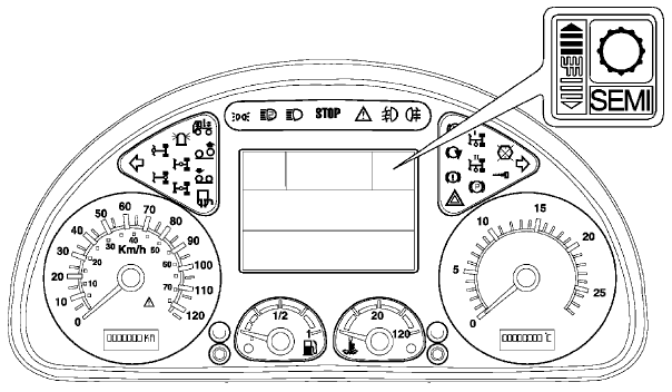 Управление тормозом-замедлителем осуществляется с помощью правого многофункционального 7-позиционного подрулево-го переключателя (1). Включение тормоза-замедлителя Intarder отображается на дисплее комбинации приборов (2) соответствующей пиктограммой.
