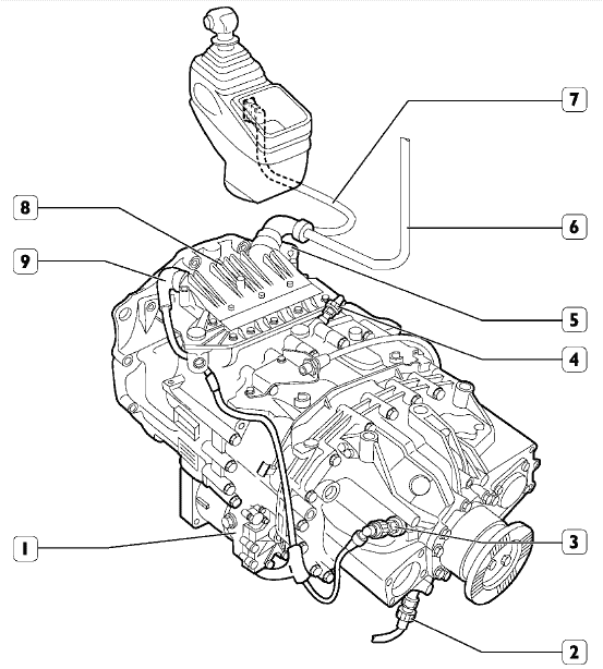 ЭБУ привода включения передач обрабатывает сигналы датчиков и включает соответствующую передачу с помощью электромагнитных клапанов и рабочего цилиндра.