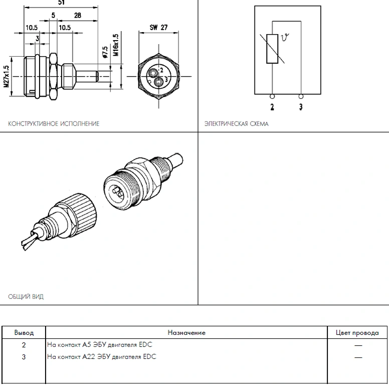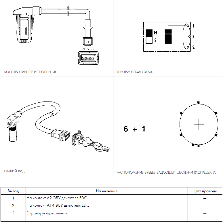 Электронный блок управления использует этот сигнал для измерения и, при необходимости, корректировки положения устройства изменения проходного сечения турбины. Датчик подключен к ЭБУ через контакты А15/А17/А19.