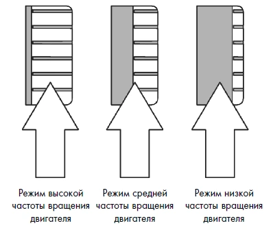 В режиме низкой частоты вращения двигателя устройство находится в максимально закрытом положении.