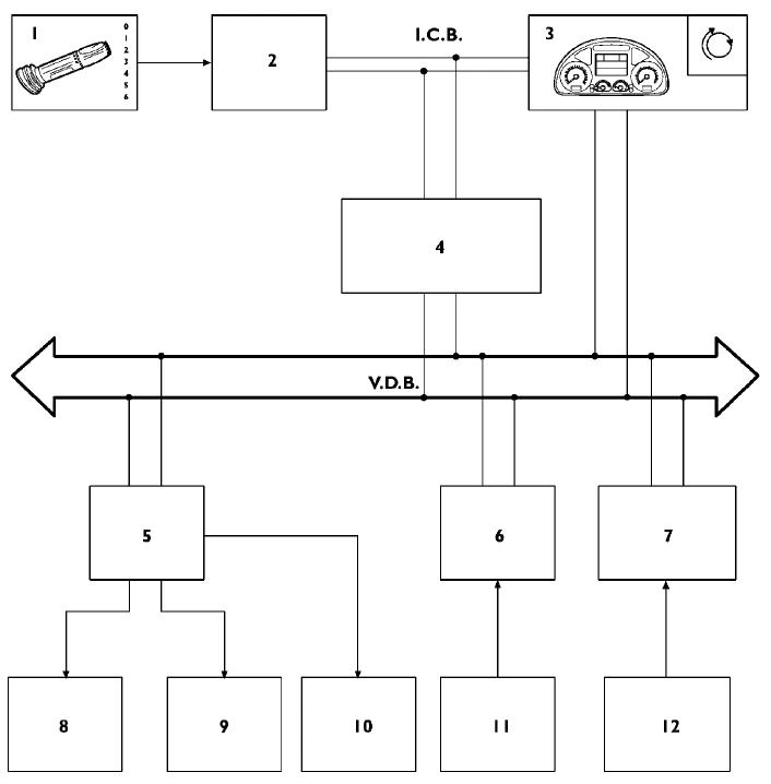 Когда ключ вставлен в замок зажигания, блок управления передает в оперативную память системы данные, записанные при предыдущем выключении двигателя и проводит диагностику системы.