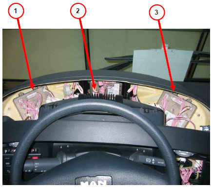 На рабочем месте водителя NEOMAN положения выключателей считываются через мультиплексорные узлы, расположенные за приборной панелью.
