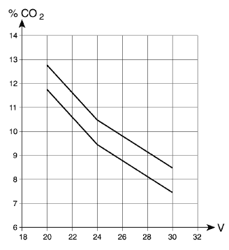 • Проверьте частоту вращения нагнетателя воздуха, учитывая изменение содержания CO2 в зависимости от напряжения.