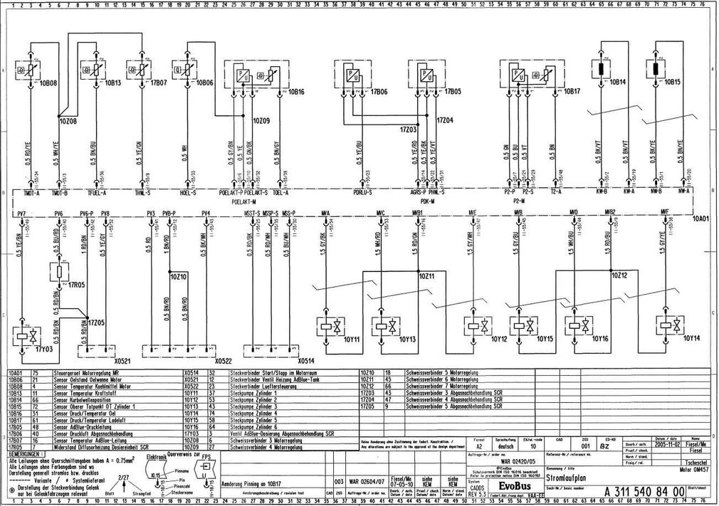 Схемы двигателя и трансмиссии автобусов MB Tourismo Е5