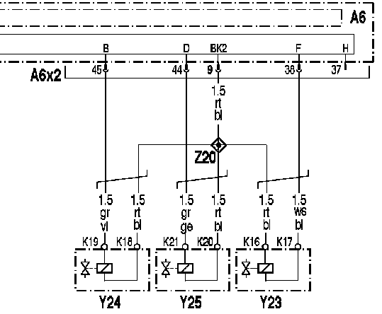 - Y20...Y22: Электромагнитные клапаны ТНВД цилиндров 1...3 (на двигателе R6)