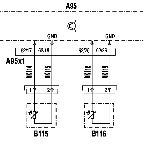 - Х116: Штекерное соединение электромагнитного клапана 'Вентилятор охлаждения двигателя' Штекерное соединение (2-контактное)