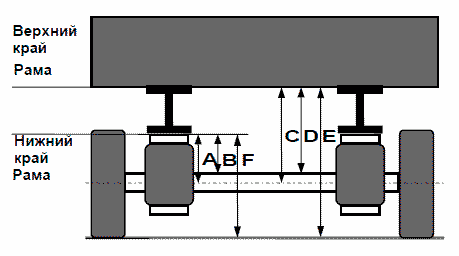 - A От нижнего края лонжерона (рама) до середины балки моста