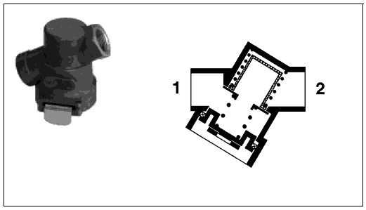 вывод 2 на подключенные после него тормозные механизмы. При загрязнении фильтровального патрона он отжимается наверх против усилия пружины. Тогда сжатый воздух проходит через магистральный фильтр неочищенным. Если при загрязненном фильтровальном патроне сбросить воздух из вывода 1, то давление на выводе 2 отжимает патрон вниз против усилия пружины. Таким образом