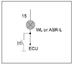 1. Тест функции ASR управления двигателем производится соединением с «минусом» контрольной лампы дважды на время > 0,5 сек. [снижает обороты двигателя в течении 10 сек.]