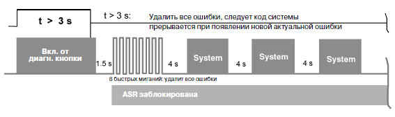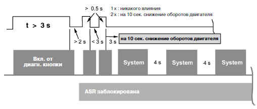 Конфигурация без системы ASR подтверждается тестовым импульсом длительностью в 1.5 сек.; при зафиксированной системе ASR длительность тестового импульса равна 3 сек (как и у контрольной лампы ABS).