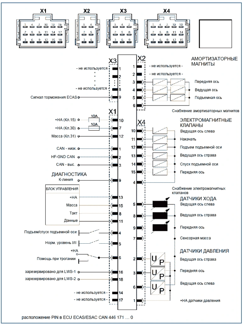 ECU - это основа системы. Обеспечение напряжением электроники ECAS происходит за счёт клеммы 15