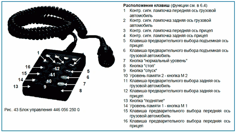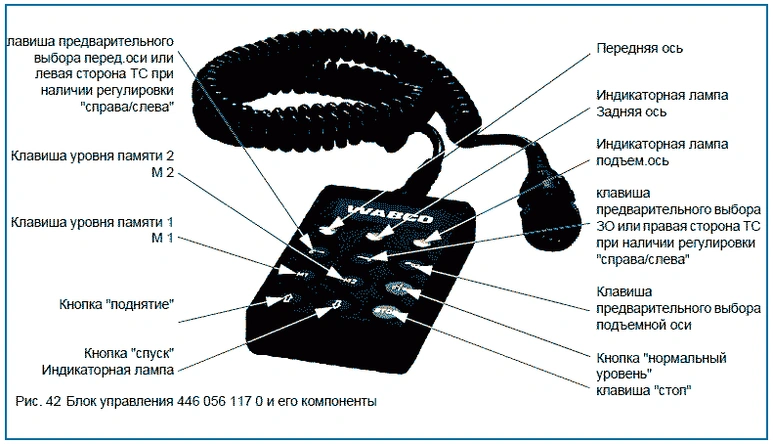 На рис. ниже показан блок управления 446 056 117 0 для ТС с полностью пневматической подвеской и подъемной осью.