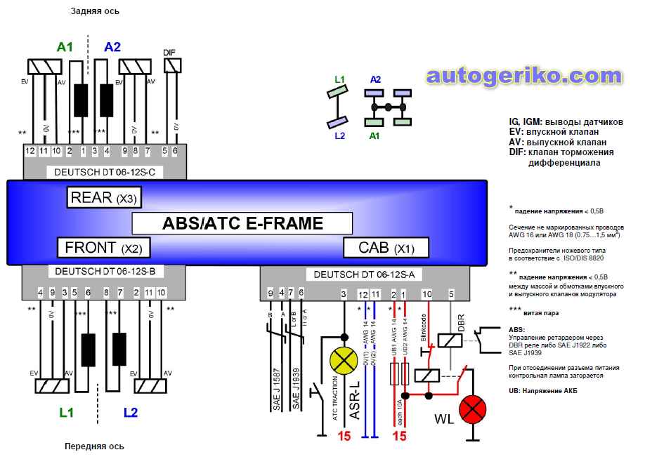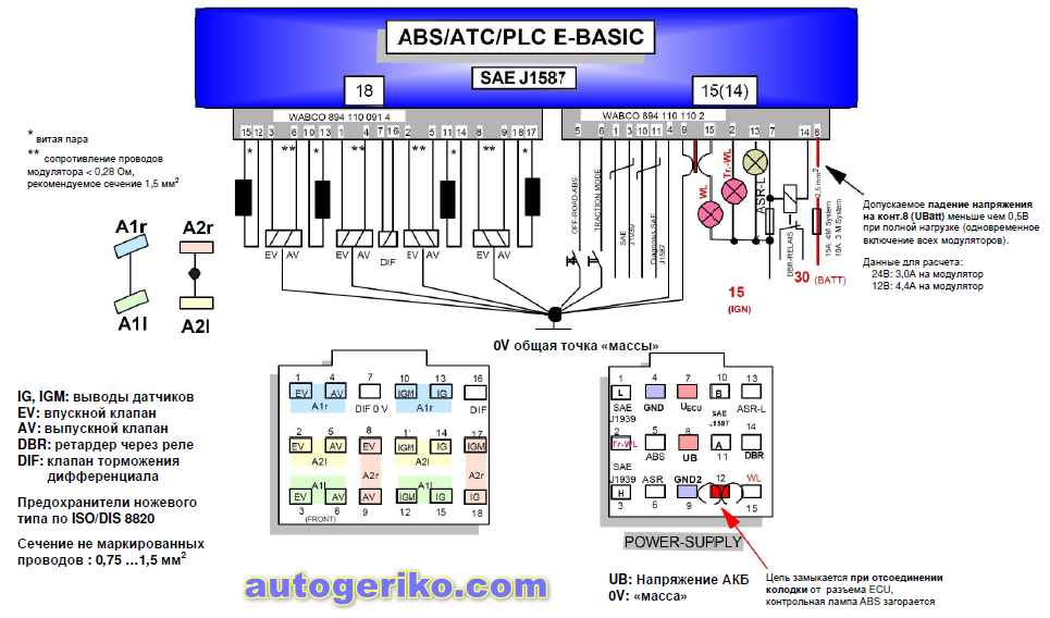 Возможность ошибочного подключения (перепутывания между собой), как проводов датчиков, так и проводов модуляторов в процессе изготовления ТС и при последующих ремонтах во время эксплуатации должна быть устранена проведением соответствующей проверки системы.