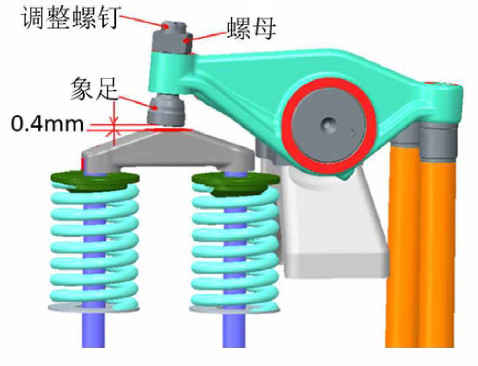 1. Вставьте щуп между перемычкой клапана и коромыслом впускного клапана, и зазор впускного клапана составит 0,4 мм;