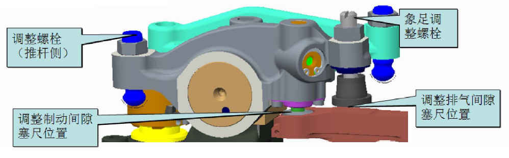 б) Регулировка тормозного зазора: Вставьте щуп между мостом выпускного клапана и малым поршнем выпускного коромысла, отрегулируйте регулировочный болт со стороны толкателя и поддерживайте тормозной зазор равным 2,05 мм;