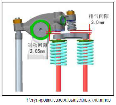 2. Регулировка зазора впускных клапанов осуществляется согласно регулировке клапанных зазоров для двигателя без тормозного