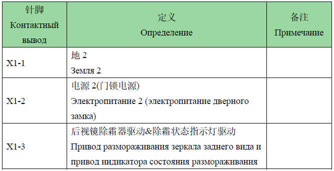 Модуль управления дверьми осуществляет такие функции, как управление блокировкой и разблокировкой дверей, тепловая защита двигателя дверного замка, вывод сигнала обратной связи центрального дверного замка, автоматическое управление блокировкой, управление подъемом и спуском дверных и оконных стекол, тепловую защиту двигателя дверей и окон, регулировку зеркал заднего вида, теплозащиту зеркал заднего вида, размораживание зеркал заднего вида, управление дверными фонарями и подсветкой ступеньки.