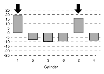 - Наиболее очевидные отклонения в цилиндрах 1 и 2