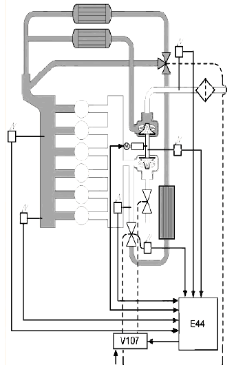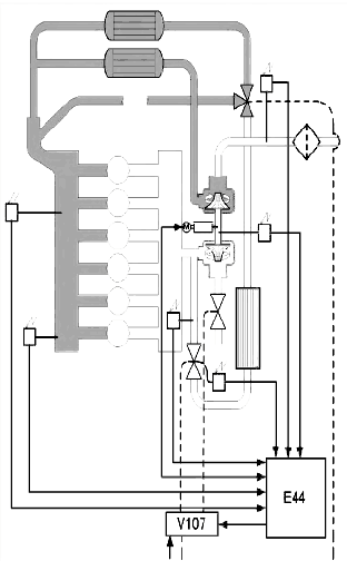 Примечание: внутренние утечки в байпасном клапане ведут к увеличению температуры отработавших газов и снижению мощности двигателя. Кроме того, увеличивается риск замерзания системы при отрицательных температурах.