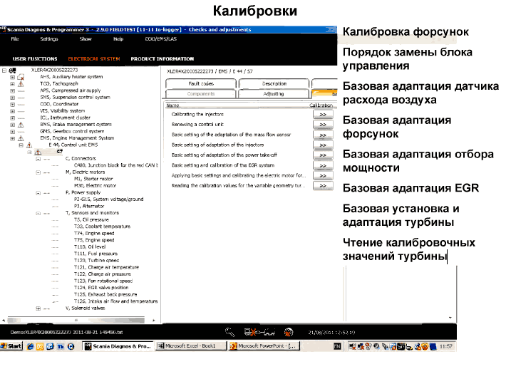 Выполнение калибровки занимает около 6 минут. Во время калибровки потребуется запуск двигателя.