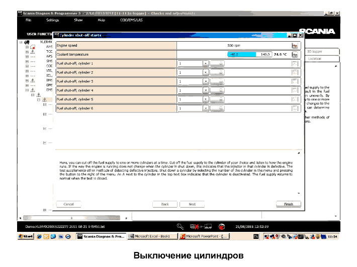 Примечание: на всех двигателях тест начинается с 1 цилиндра.