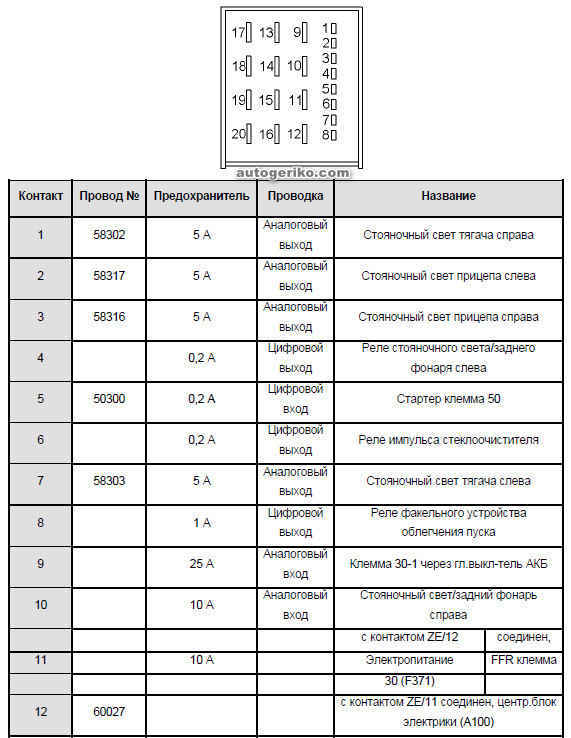 Штекер ZE (центральный блок электрики)